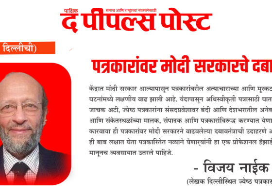 – विजय नाईक (होनोलुलू, हवाई, अमेरिका)  केंद्रात मोदी सरकार आल्यापासून पत्रकारांवरील अत्याचाराच्या आणि मुस्कटदाबीच्या घटनांमध्ये लक्षणीय वाढ झाली आहे. यंदापासून…