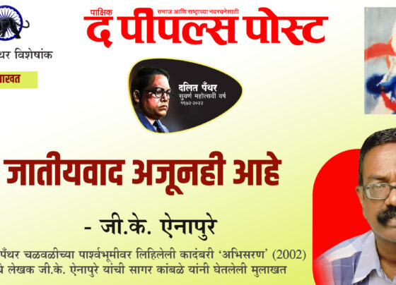 दलित पँथर चळवळीच्या पार्श्‍वभूमीवर लिहिलेली कादंबरी ‘अभिसरण’ (2002) चे लेखक जी.के. ऐनापुरे यांची सागर कांबळे यांनी घेतलेली मुलाखत सागर कांबळे…