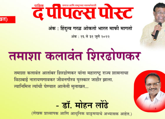 तमाशा कलावंत आतांबर शिरढोणकर यांना महाराष्ट्र राज्य शासनाचा विठाबाई नारायणगावकर जीवनगौरव पुरस्कार जाहीर झाला. त्यानिमित्त त्यांची घेण्यात आलेली मुलाखत… प्रश्‍न…